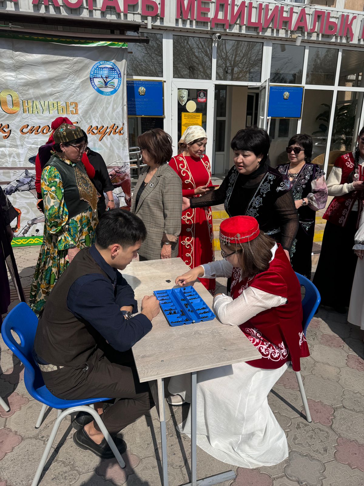 «Жамбыл жоғары медициналық колледжі» ШЖҚ КМК «Мейіргер ісі» бөлімінің ұйымдастыруымен 20 Наурыз – Ұлттық спорт күні өткізілді. Биыл ораза айт мерекесімен тұспа-тұс келді. Ұлттық ойын күні – ата-бабамыздан мирас болып қалған асыл құндылықтарды жаңғырту, жас ұрпаққа насихаттау және ұлттық рухты көтеру мақсатында өткізілетін ерекше мереке. Ұлттық ойындар – халқымыздың ғасырлар бойы қалыптасқан мәдени мұрасы, рухани байлығы. Олар тек ойын-сауық құралы ғана емес, сонымен қатар ұрпақты ептілікке, батылдыққа, шапшаңдыққа және ұйымшылдыққа тәрбиелейтін маңызды құрал. Бұл күні «Асық ату», «Тоғызқұмалақ», «Арқан тартыс», «Қазақша күрес», «Бәйге» сияқты ұлттық ойындар ойнатылды, колледж студенттері өз өнерлерін көрсетті. Әр ойын – халқымыздың өмір салты мен дүниетанымының айқын көрінісі. Ұлттық ойындар арқылы біз өткенімізді дәріптеп қана қоймай, болашағымызды нықтаймыз. Себебі ұлттық құндылықтарды құрметтеген ұрпақ – елдің тірегі.