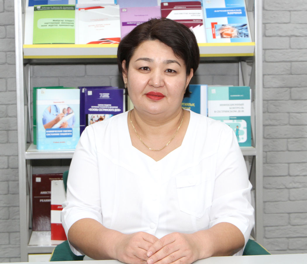 «Мейіргер ісі» бөлімінің меңгерушісі. Білімі: арнайы-орта: 1989-1992жж. – Қызылорда медициналық училищесі, «Мейіргер ісі» мамандығы; жоғары: 2001-2006 жж. – Тараз мемлекеттік педагогикалық институты, «Биология және химия» пәнінің оқытушысы; 2012-2018 жж.- Саратов мемлекеттік…