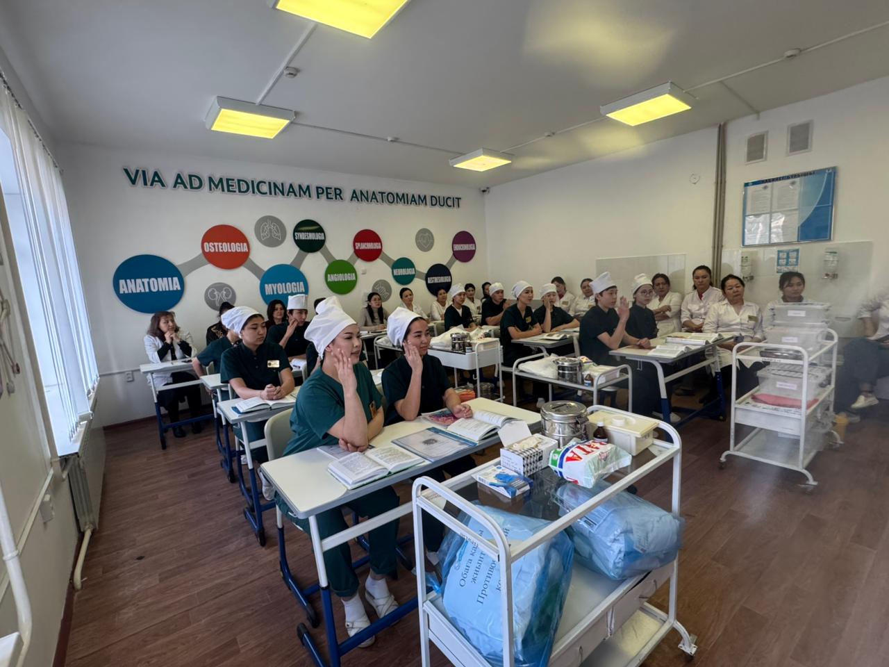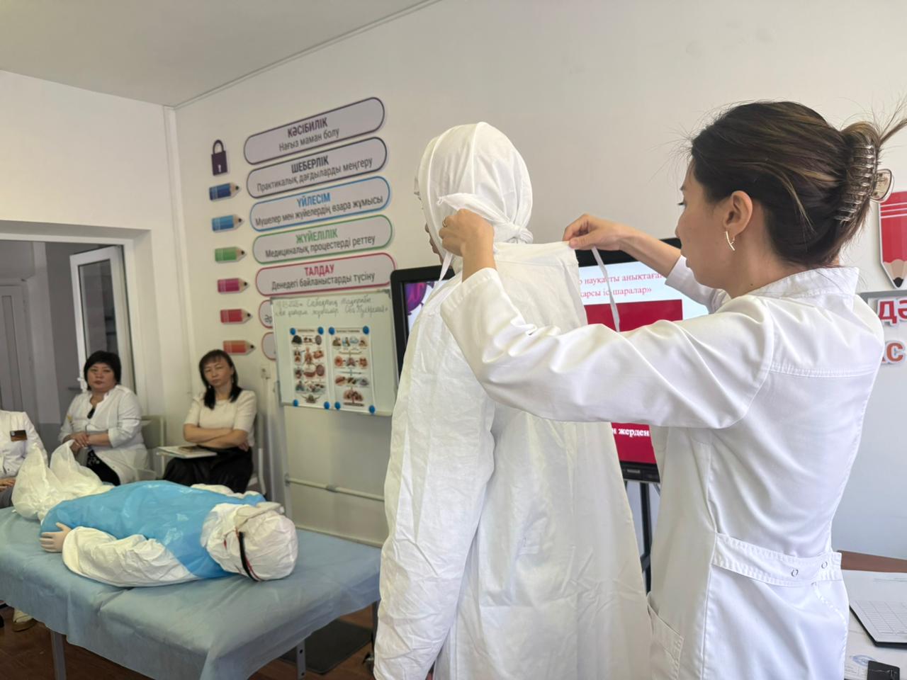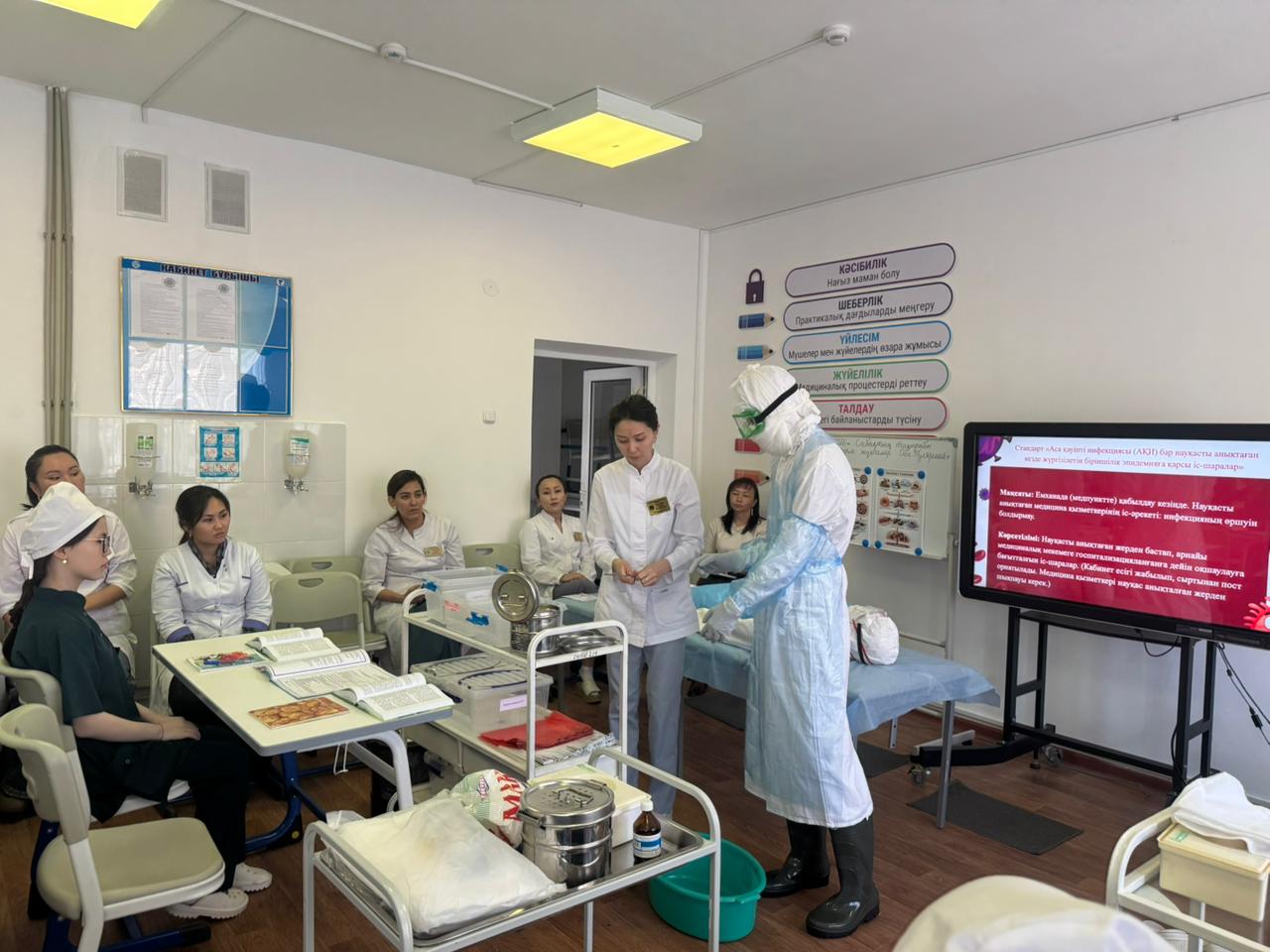 Жамбыл жоғары медициналық колледжінің №2 Арнайы пәндер ЦӘК оқытушысы А.Е. Батанова «Инфекциялық аурулар» пәнінен «Емдеу ісі» мамандығының 316ЕФ-9/23 топ студенттерімен «Аса қатерлі жұқпалар. Оба. Туляремия» тақырыбында тәжірибелік ашық сабақ өткізді. Сабақтың мақсаты: студенттерге оба және туляремия ауруларының этиологиясы, патогенезі, эпидемиологиясы, клиникалық белгілері, зертханалық диагностикасы, емдеу шаралары, профилактикасы және күтімі туралы түсіндіру. Аса қатерлі жұқпалар кезінде обаға қарсы көп реттік костюмді киіп-шешу техникасын орындауды үйрету, клиникалық ойлау қабілеті мен тәжірибелік дағдыларын дамыту, сондай-ақ қауіпсіздік талаптарын сақтай отырып, кәсіби құзыреттілігін қалыптастыру.