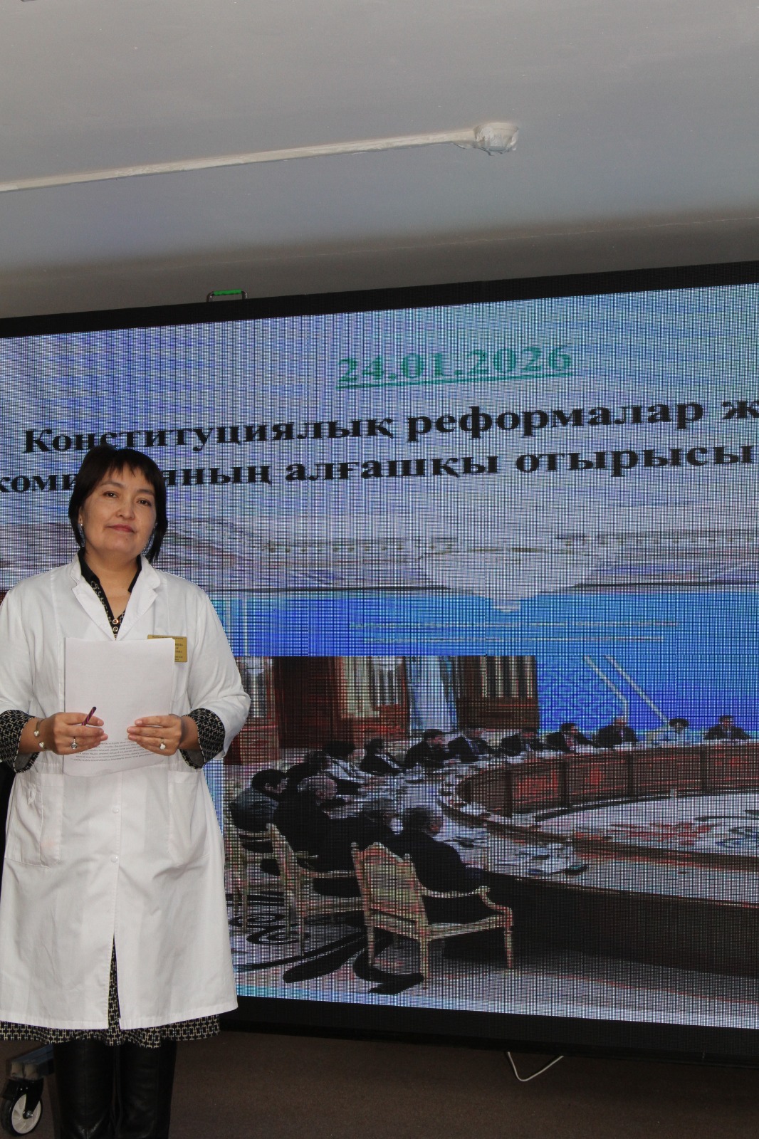 2026 жылдың 3 ақпан күні «Жамбыл жоғары медициналық колледжі» ШЖҚ КМК қызметкерлері және оқытушылары арасында Қазақстан Республикасының жаңа Конституциясының жобасын түсіндіру бойынша жиналыс өткізілді. Іс-шара барысында Конституцияның құқықтық мемлекет қалыптастырудағы рөлі, азаматтардың құқықтары мен бостандықтарын қорғауға бағытталған негізгі қағидаттары, сондай-ақ олардың білім беру саласына әсері жан-жақты қарастырылды. Қатысушылар конституциялық құндылықтарды білім беру процесінде кеңінен насихаттау мен білім алушылардың құқықтық мәдениетін қалыптастырудың маңыздылығын атап өтті. Жиналыс қорытындысы бойынша Қазақстан Республикасының жаңа Конституциясының негізгі нормалары мен қағидаттарын оқытушылар мен қызметкерлерге түсіндіру, оларды оқу-тәрбие жұмысына жүйелі түрде енгізу және құқықтық ағарту жұмыстарын күшейту жөнінде тиісті шешімдер қабылданды.