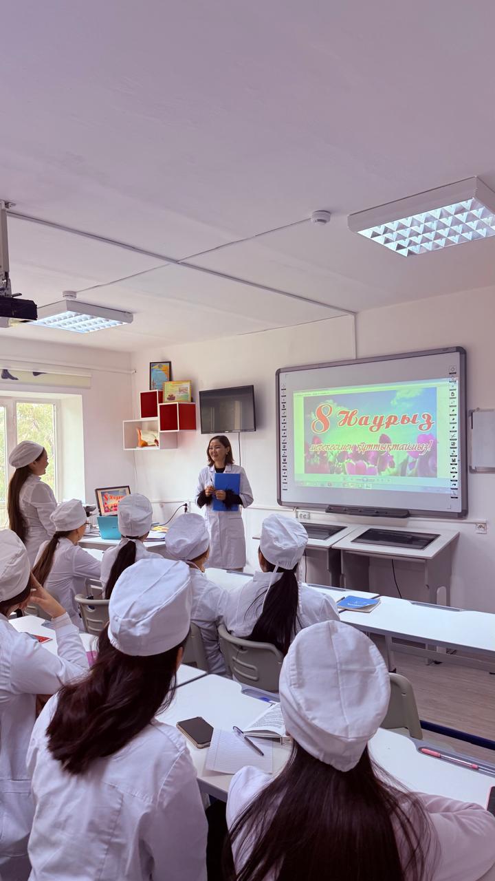 5 наурыз 2026 жылы Жамбыл жоғары медициналық колледжі 101-М 9/25 тобының студенттерімен топ кураторы Шорманбаева Р.Т.-ның ұйымдастыруымен «Әйел – әлемнің әсемдігі» тақырыбында кураторлық сағат өткізілді. Кураторлық сағаттың мақсаты – әйел затының қоғамдағы орны мен рөлін түсіндіру, аналар мен қыз-келіншектерге деген құрмет сезімін қалыптастыру, студенттерді адамгершілікке, сыйластыққа және мейірімділікке тәрбиелеу. Кураторлық сағат барысында әйел адамның отбасы мен қоғамдағы маңызы туралы әңгіме жүргізіліп, студенттер өз ойларымен бөлісті. Сонымен қатар ананың мейірімі, әйелдің нәзіктігі мен даналығы жайлы пікір алмасу ұйымдастырылды. Студенттер белсенді қатысып, тақырып бойынша өз көзқарастарын білдірді.
