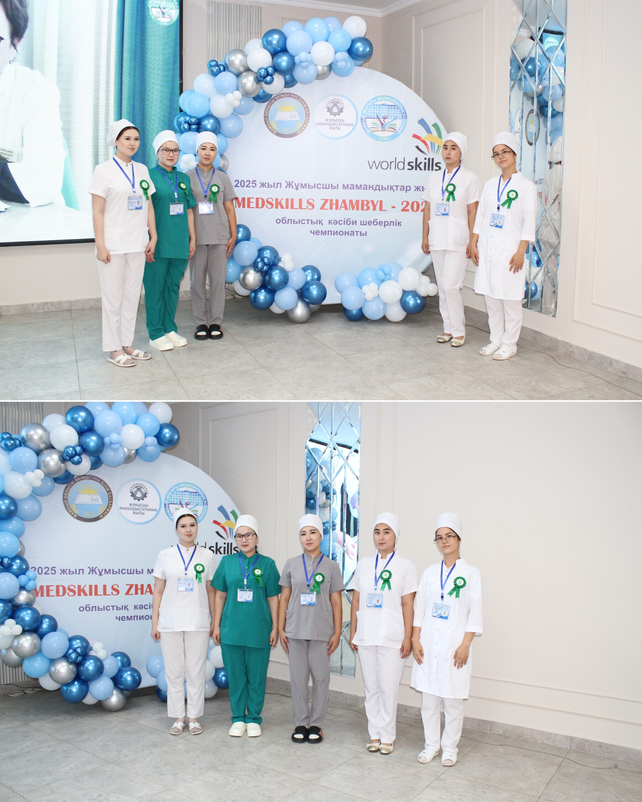 «Мейіргер  ісі» мамандығы бойынша медициналық колледж студенттері арасында өткен «MEDSKILLS ZHAMBYL – 2025» облыстық чемпионатына «Тараз-Болашақ» жоғары медициналық колледжі, «ALEM» кәсіби білім беру колледжі, «Жамбыл жоғары медициналық колледжі» ШЖҚ КМК студенттері қатысты.