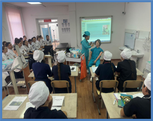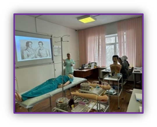 02.05.2025 ж. №3 арнайы пәндер циклдық әдістемелік комиссиясы оқытушысы В.Е. Омарбаева «Мейіргер ісі негіздері» пәнінен 208 М – 9/23 ІІ-топшасымен «Көк тамырға инъекция жасау техникасы. Көк тамырдан вакуумды жүйемен қан алу техникасы. Инъекциядан кейінгі болатын асқынулар» тақырыбында колледжішілік ашық сабақ өткізді.
