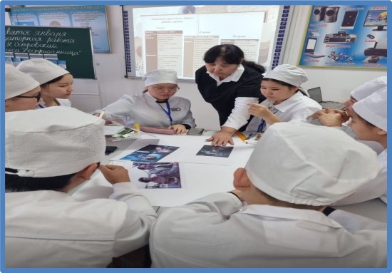 12.12.2022 ж. Әлеуметтік-экономикалық, жалпы білім беру және жалпы ізгілендіру пәндері циклдық әдістемелік комиссиясының оқытушысы Ш.Е. Ашимова, «Қазақстан тарихы» пәні бойынша, «Емдеу ісі «бөлімі, 211 ЛФ9/20 тобымен «Сталинско-голощекинская модель коллективизации Казахстана» тақырыбында ашық сабақ өткізді.