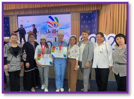 - «Медициналық және әлеуметтік күтім» құзыреттілігі бойынша Жамбыл жоғары медициналық колледжінің студенті Сүйінбекұлы Кәрім – 1 орын-алтын;