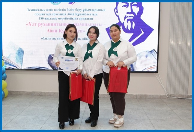 - «Визуалды мерчендайзинг» құзыреттілігі бойынша Жамбыл политехникалық жоғары колледжінің студенті Жамалбек Сұлтанәлі Тұрғаналиұлы – 3 орын – қола жүлдегері;