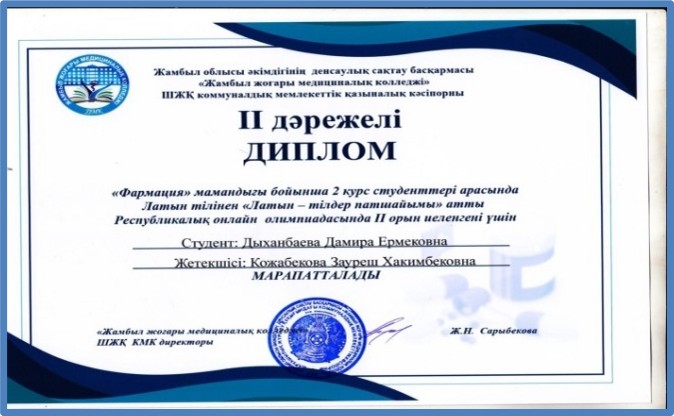 ІІ дәрежелі диплом: Жамбыл инновациялық жоғары колледжі