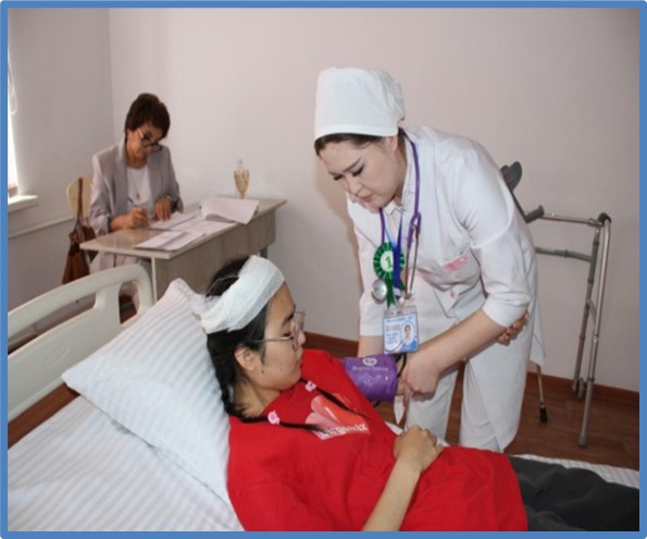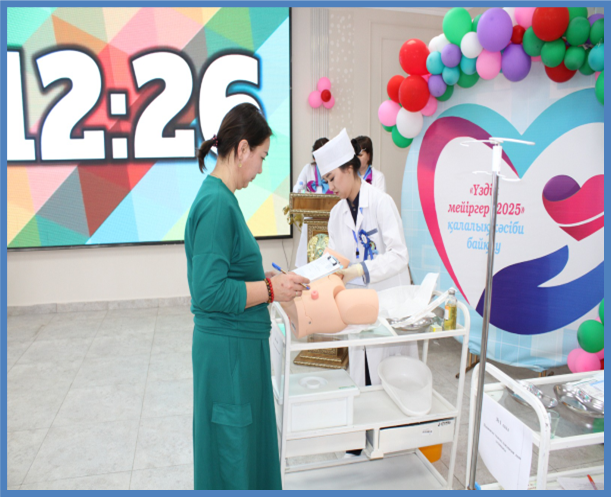 Сайыскерлер бөлінген аймақтарда манипуляцияларды орындаудағы тәжірибелік дағдыларын көрсетіп, стандартталған пациенттермен коммуникативтік байланыс орнату, клиникалық ойлау қабілетін, конфликтті жағдайларды алдын алу шеберлігін танытты.