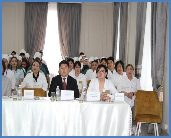 06.04.2023жылы «Жамбыл облысы әкімдігі денсаулық сақтау басқармасының қолдауымен «Жамбыл жоғары медициналық колледжі» ШЖҚ КМКбазасында «Мейіргер ісі» мамандығы «Жалпы тәжірибедегі мейіргер» біліктілігі бойынша II курс студенттері арасында «Анатомия және физиология үздігі-2023» Республикалық кәсіби байқауы өткізілді. Байқаудың салтанатты түрде ашылуына «Жамбыл облысы әкімдігі денсаулық сақтау басқармасы» КММ басшысы Оспанова Жанар Мықтыбекқызы келіп, қатысушыларға сәттілік тіледі.