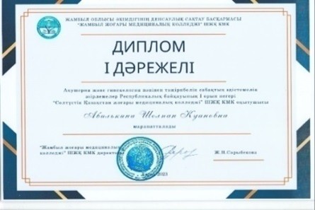 І орын – Абдыкадырова Луиза Гламжановна – Шымкент жоғары медициналық колледжі.