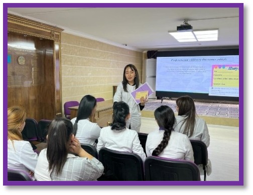 30.11.2023ж. Жамбыл жоғары медициналық колледжінде оқу-әдістемелік кабинетінің ұйымдастыруымен жас мамандарға арналған «Үйренейік, ізденейік, Жас маман!« тақырыбында әдістемелік көмек көрсету, бағыт-бағдар беру мақсатында «Жас мамандар» мектебінің кезекті отырысы өтті.