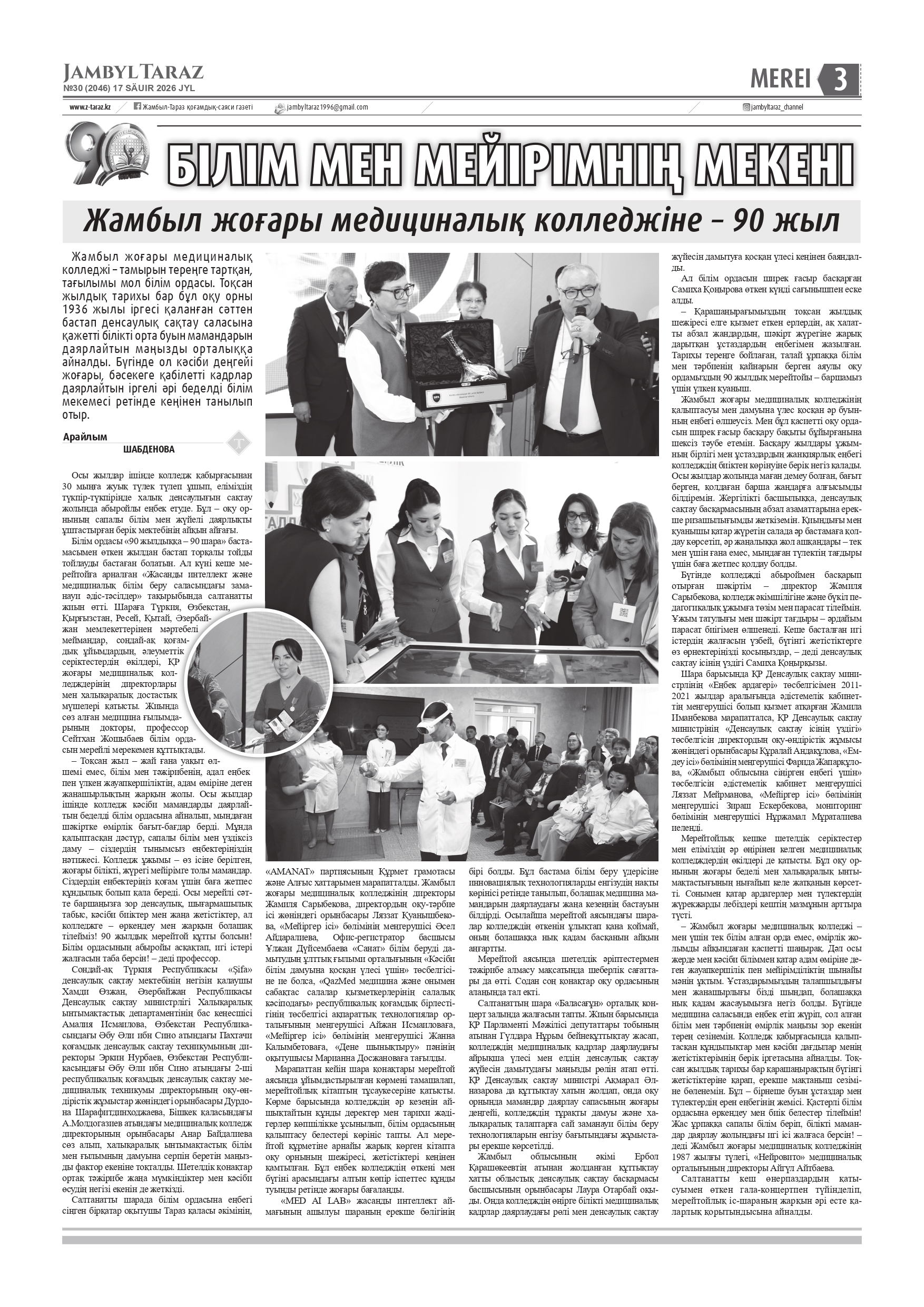 Жамбыл жоғары медициналық колледжіне – 90 жыл
