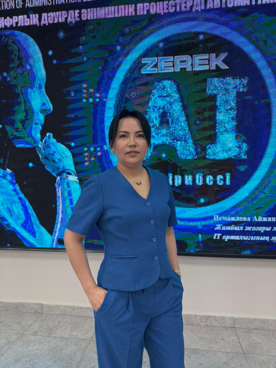 Жамбыл жоғары медициналық колледжінің 90 жылдық мерейтойына арналған халықаралық іс-шара аясында ІТ орталығының меңгерушісі Исмаилова Айжан Ерлепесовна өзінің авторлық цифрлық платформасы – ZEREK AI жүйесін жоғары деңгейде таныстырды.