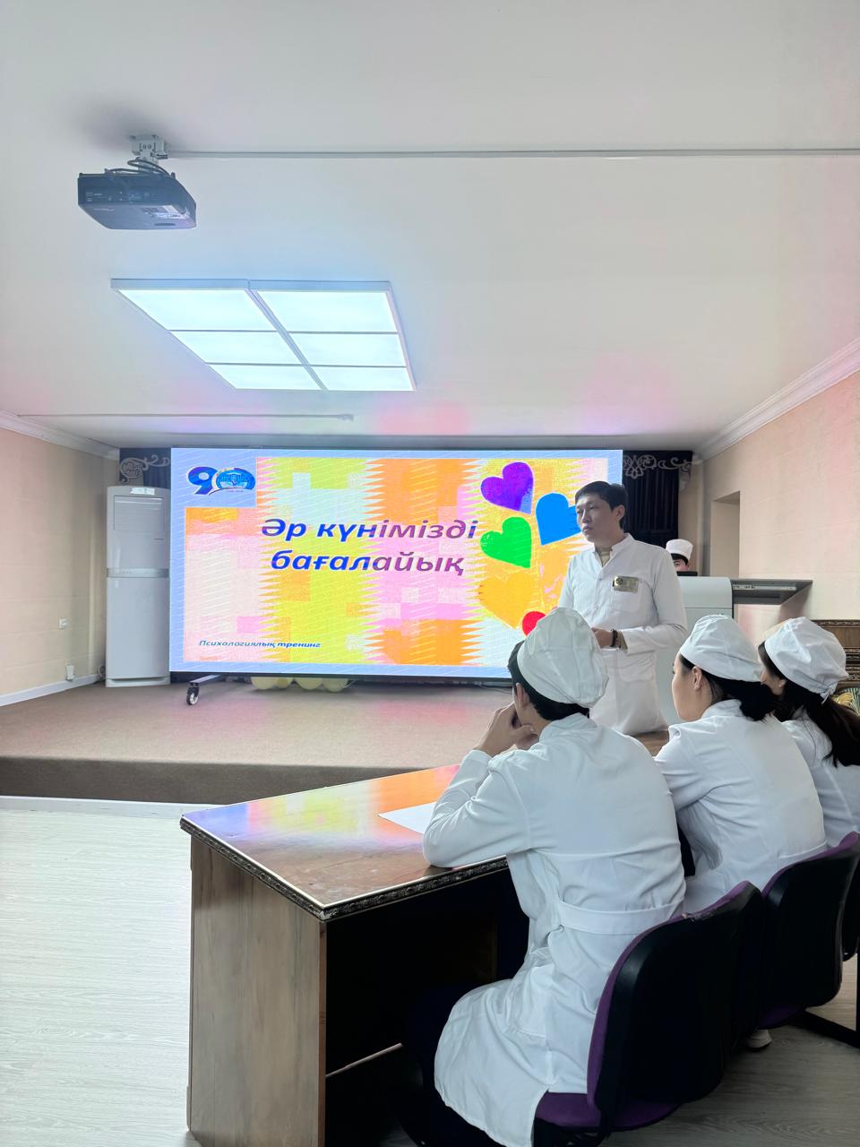 24.12.2025 ж. Жамбыл жоғары медициналық колледжінде студенттермен «Әр күнімізді бағалайық!» тақырыбында психологиялық тренинг өткізілді. Тренинг барысында қатысушылар өз эмоцияларын тануға, күнделікті өмірге саналы көзқараспен қарауға және өмірлік құндылықтарын айқындауға бағытталған жаттығулар орындады.