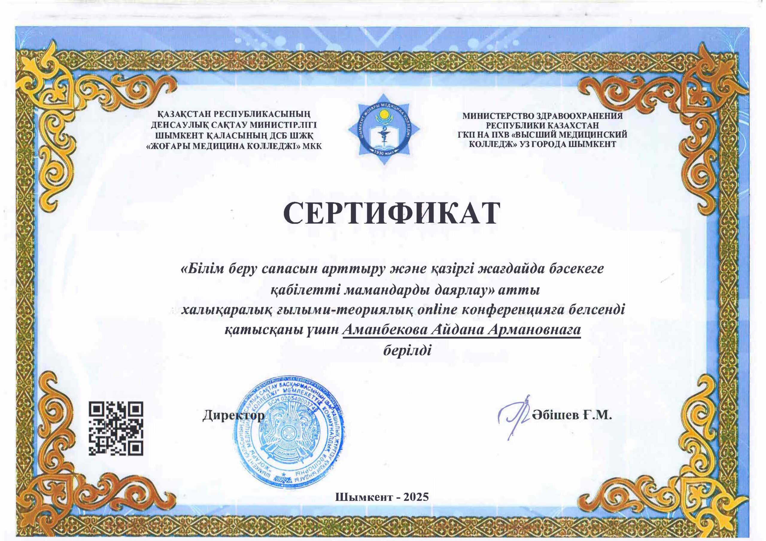 Преподаватели колледжа Сайлаубаева Н.Н., Аманбекова А.А. и Даулетов А.М. опубликовали свои материалы в сборнике конференции и были награждены сертификатами.