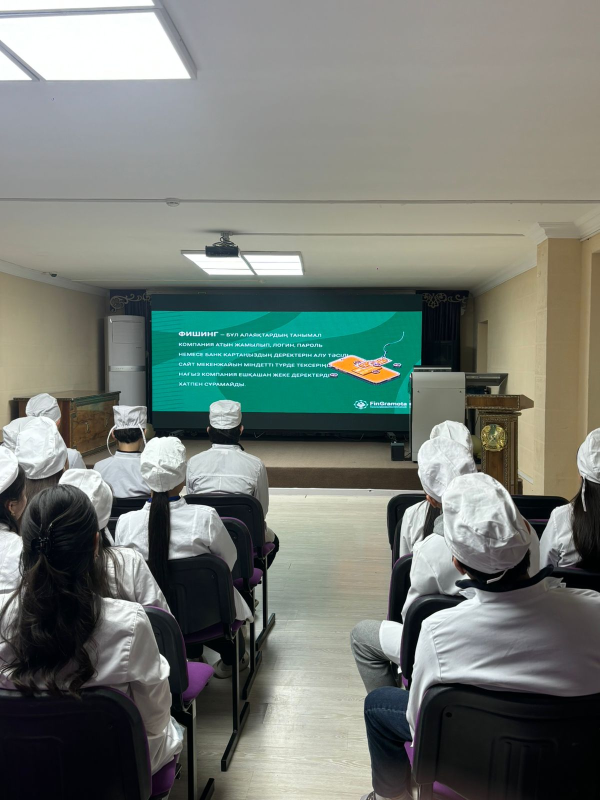 2025 жылдың 26 желтоқсанында Жамбыл жоғары медициналық колледжінің студенттеріне жеке бюджетті басқару, банктік картаны пайдалану ережелері, онлайн ойындардағы қауіпсіз шығындар, көп кездесетін қаржылық қателіктер және олардың алдын алу жолдары, оқуға қаражат жинақтау, инвестициялау негіздері, қаржылық алаяқтық және жеке қаржылық қауіпсіздік мәселелері туралы бейне фильмдермен таныстыру жұмыстары жүргізілді.