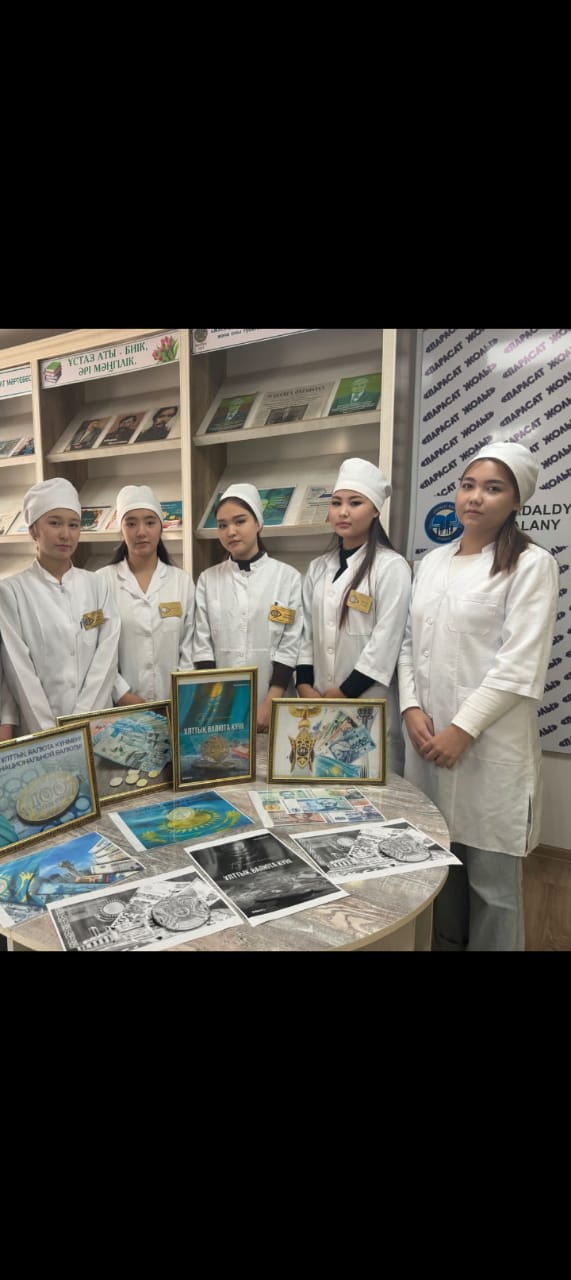 13.11. 2025 ж. Жамбыл жоғары медициналық колледжінде 15 қараша Ұлттық валюта күніне орай «Теңге мемлекеттік келбет» атты көрме ұйымдастырылды. Студенттер төл валютамыздың алғаш пайда болуын, өзгеру және түрлену тарихын білді. Елбасы өз теңгемізді шығаруға қаржыгерлерге тапсырма берді, 1993 жылы 15 қарашада теңгені шығару туралы Жарлыққа қол қойылды.