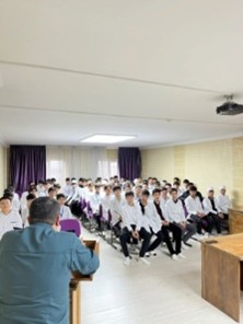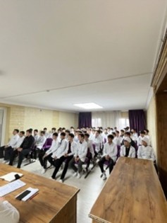 | 3.10.2025 жылы тәрбие бөлімінің ұйымдастыруымен, ҚБАЖ меңгерушісі Р. Усенов және колледж инспекторы, Тараз қаласы ПБ ЖПҚБ ЮПБ УПИ полиция капитаны С.Е. Убайдуллаевтардың қатысуымен «Құқық бұзушылықтың алдын алу-басты міндет» тақырыбында ұлдар жиналысы өткізілді. |