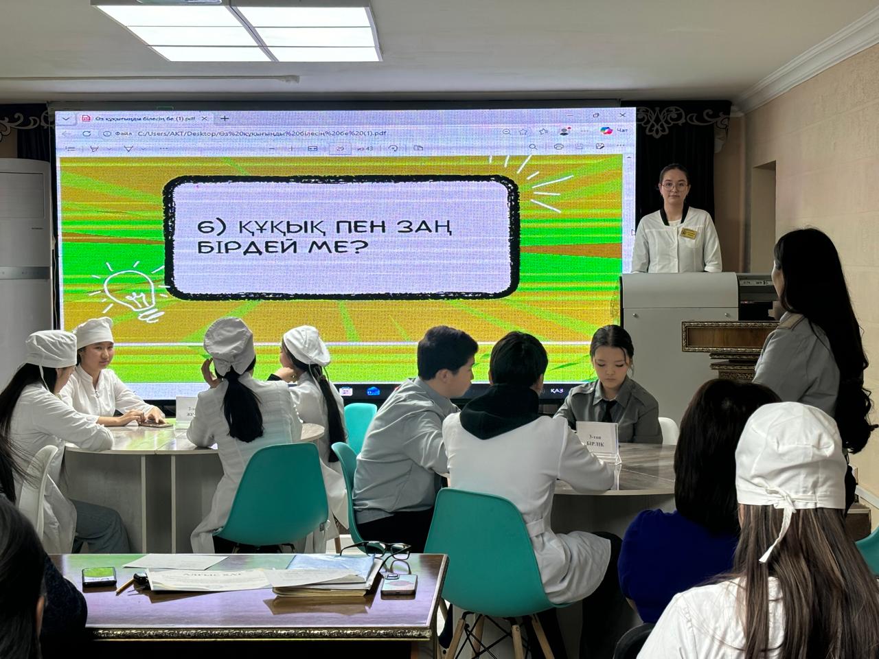 2026 жылдың 14 қаңтар күні «Ұшқыр ой алаңы» жобасы аясында «Өз құқығыңды білесің бе?» тақырыбында құқықтану мәселелері бойынша викторина ойыны өткізілді. Ойын барысында студенттер: