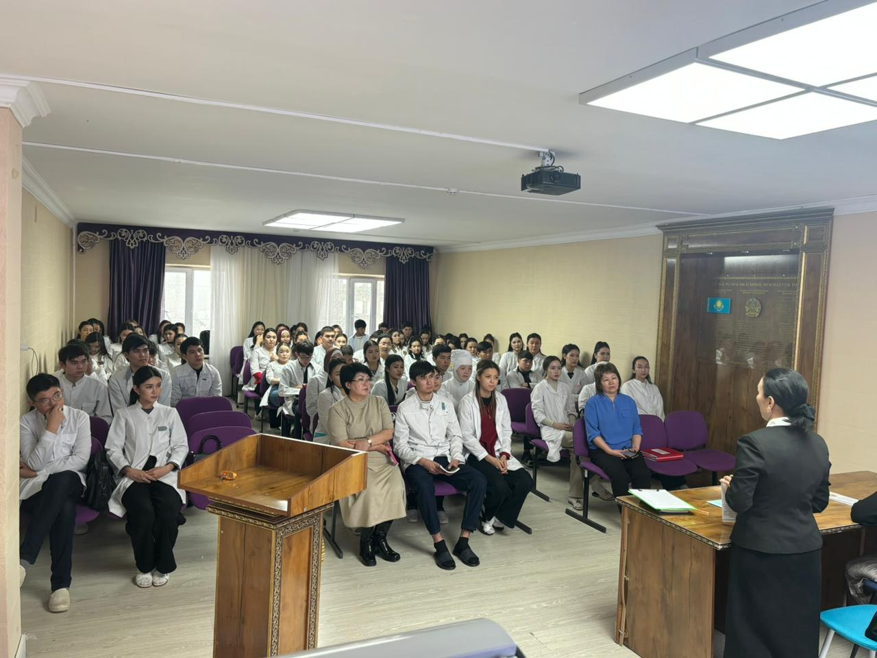 2026 жылдың 11 ақпан күні Жамбыл жоғары медициналық колледжінде «Жамбыл облысы әкімдігінің жұмыспен қамтуды үйлестіру және әлеуметтік бағдарламалар басқармасының Жамбыл облыстық тұрмыстық зорлық-зомбылық құрбандарына әлеуметтік көмек көрсету орталығы» КММ-нің мамандары Б.Қорғанбаева мен Н.Шаянованың қатысумен ақпараттық түсіндірме жұмыстары жүргізілді.