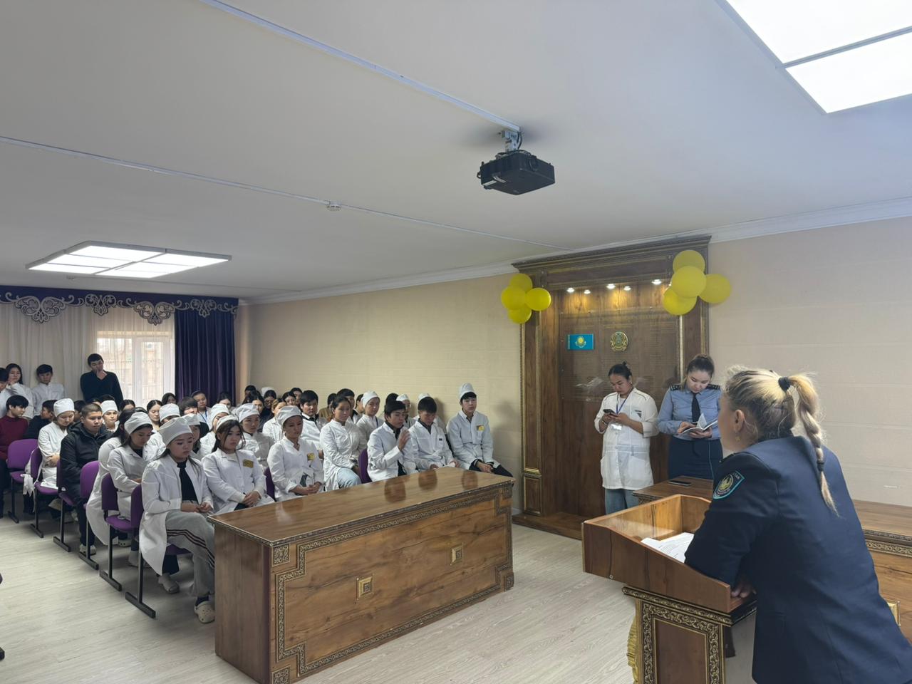 05.12.2025ж «Гендерлік зорлық-зомбылыққа қарсы 16 күн белсенді іс-әрекет» акциясы аясында «Жастар арасындағы мәдениет пен өзара сыйластық» тақырыбында Тараз қаласы ПБ Отбасылық-тұрмыстық зорлық-зомбылыққа қарсы күрес жөніндегі мамандандырылған бөлімшенің инспекторлары Ерген Балнұр Мұратқызы, Уразалиева Меруерт Бейсенбекқызы дәріс өткізді. Мақсаты: Жастарға өзара құрметтің маңыздылығын түсіндіру, жанжалдың алдын алу мәдениетін қалыптастыру, зорлық-зомбылықсыз ортаны нығайту және құқықтық сауаттылықты арттыру. Жастар – қоғамның болашағы. Өзара сыйластық пен мәдениетті қарым-қатынас-қауіпсіз және үйлесімді қоғамның негізі.