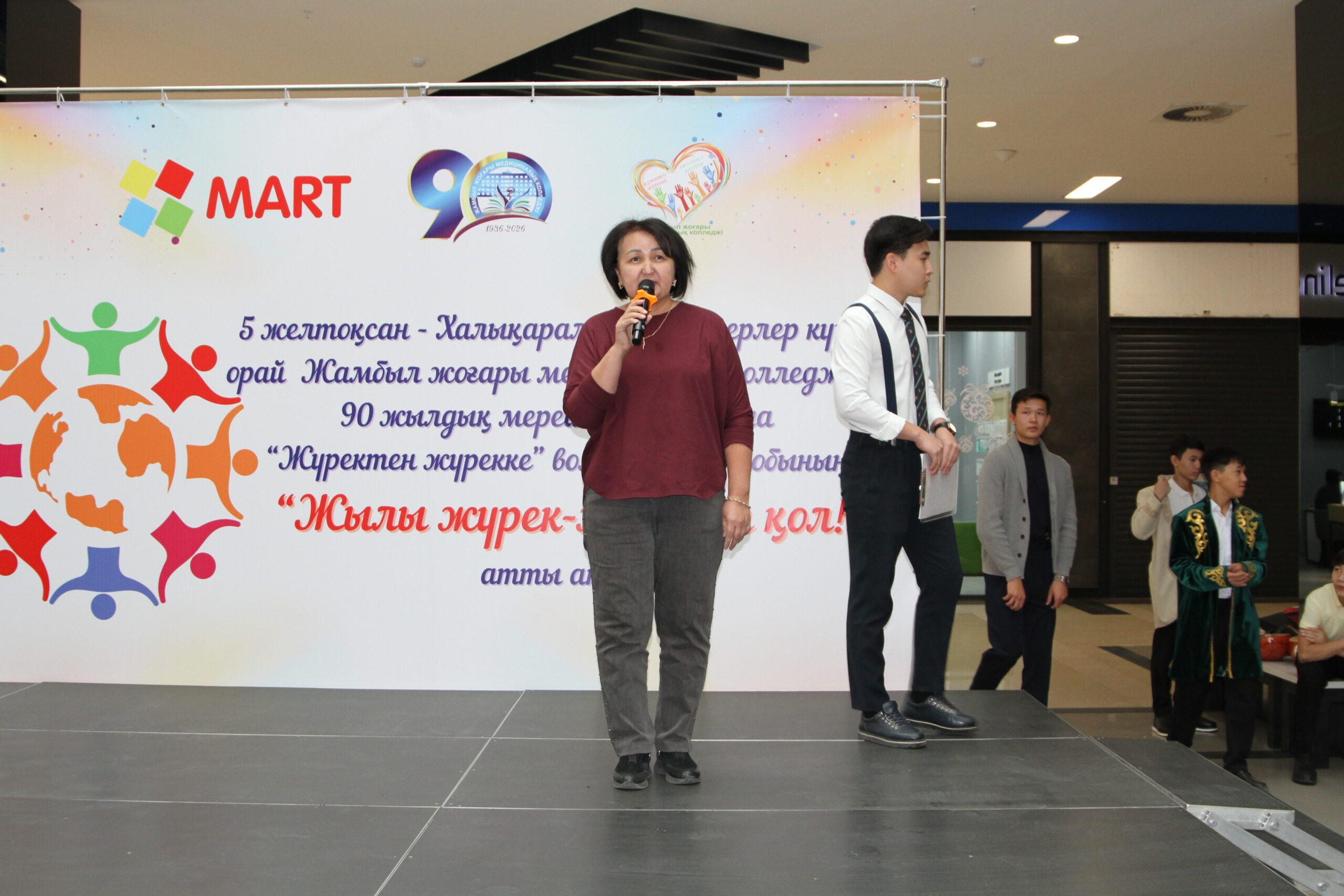 05.12.2025 ж. Жамбыл жоғары медициналық колледжінің 90 жылдық мерейтойы аясында Халықаралық волонтерлер күніне орай тәрбие бөлімінің ұйымдастыруымен «Жүректен жүрекке» волонтерлар тобы «Жылы жүрек-жомарт қол!» атты қалалық акциясын өткізді.